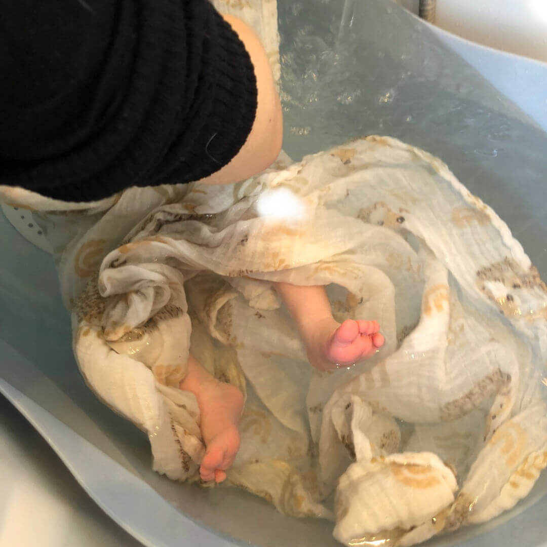 Notre rencontre débute par un moment d’échange bienveillant et respectueux autour de votre grossesse, du parcours de celle-ci et de vos possibles difficultés rencontrées. Puis, je vous apprends l’emmaillotage de bébé après que vous ayez choisi le lange, et lui propose le bain.